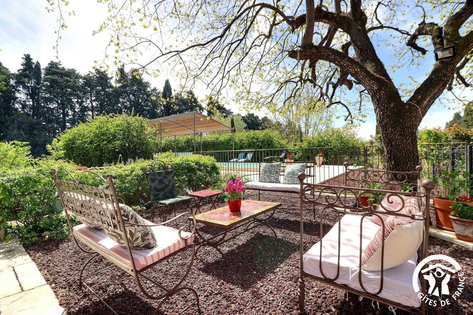 Sur une petite route de campagne à 18 kms d’Avignon, beau mas restauré proposant 2 chambres d’hôtes sur un terrain entièrement clôturé. Vous apprécierez l’ombre bienfaisante du platane devant la maison, l’environnement arboré et fleuri, l’accueil des animaux de la maison (chiens, poules, oies...).
