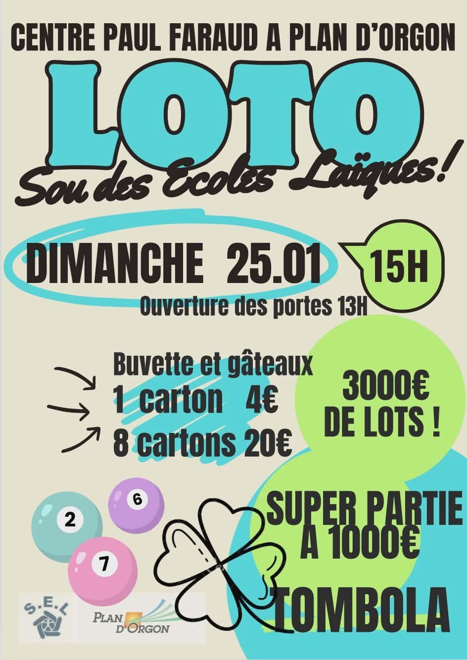 Venez tenter votre chance et passer un moment convivial à l’occasion du loto de l’association SOU des Ecoles Laïques.