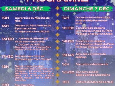 La commune organise son traditionnel Marché de Noël sur la le Place de la Mairie. De nombreux exposants seront au rendez-vous ainsi que des animations tout au long de cette journée. Restauration et buvette sur place.
