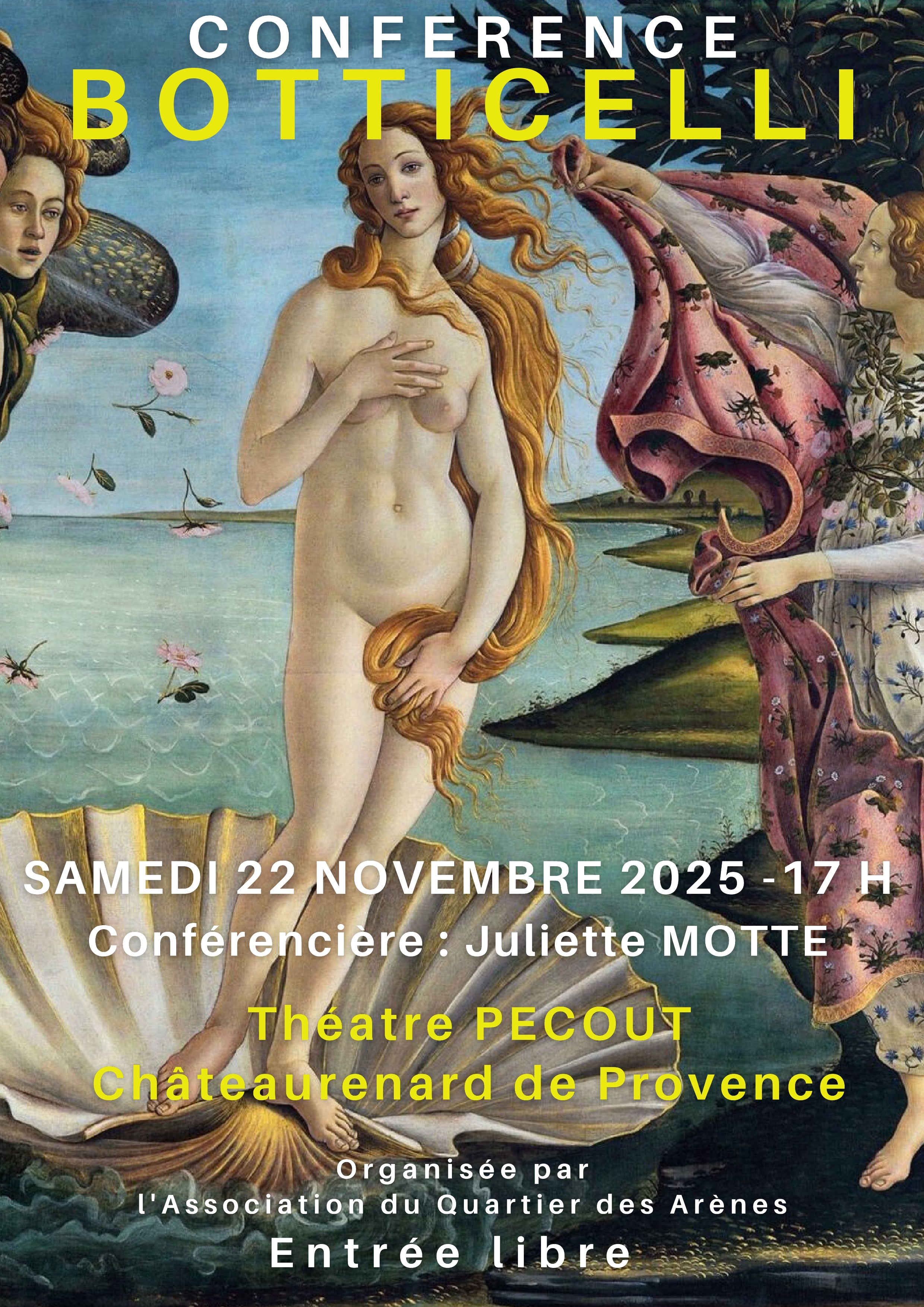 Conférence "Botticelli" organisée par l’Association du Quartier des Arènes et animée par Juliette Motte au Théâtre Pécout.