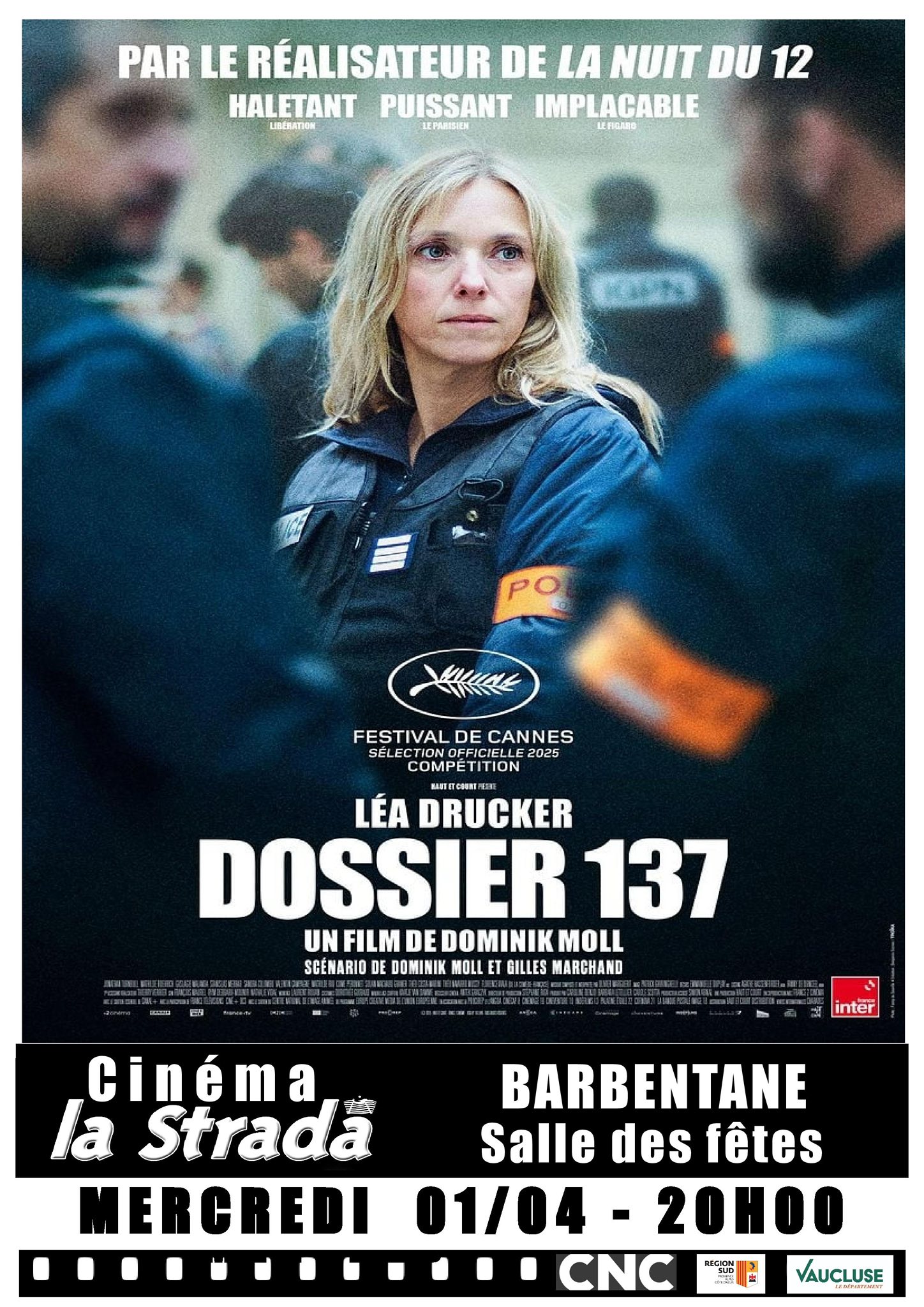 20h : "Dossier 137", de Dominik Moll. Avec Léa drucker, Guslagie Malanda, Mathilde Roehrich.