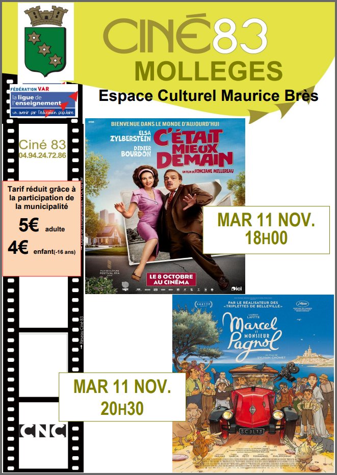 La municipalité de Mollégès propose une double séance "ciné" à l’Espace Culturel Maurice Brès :