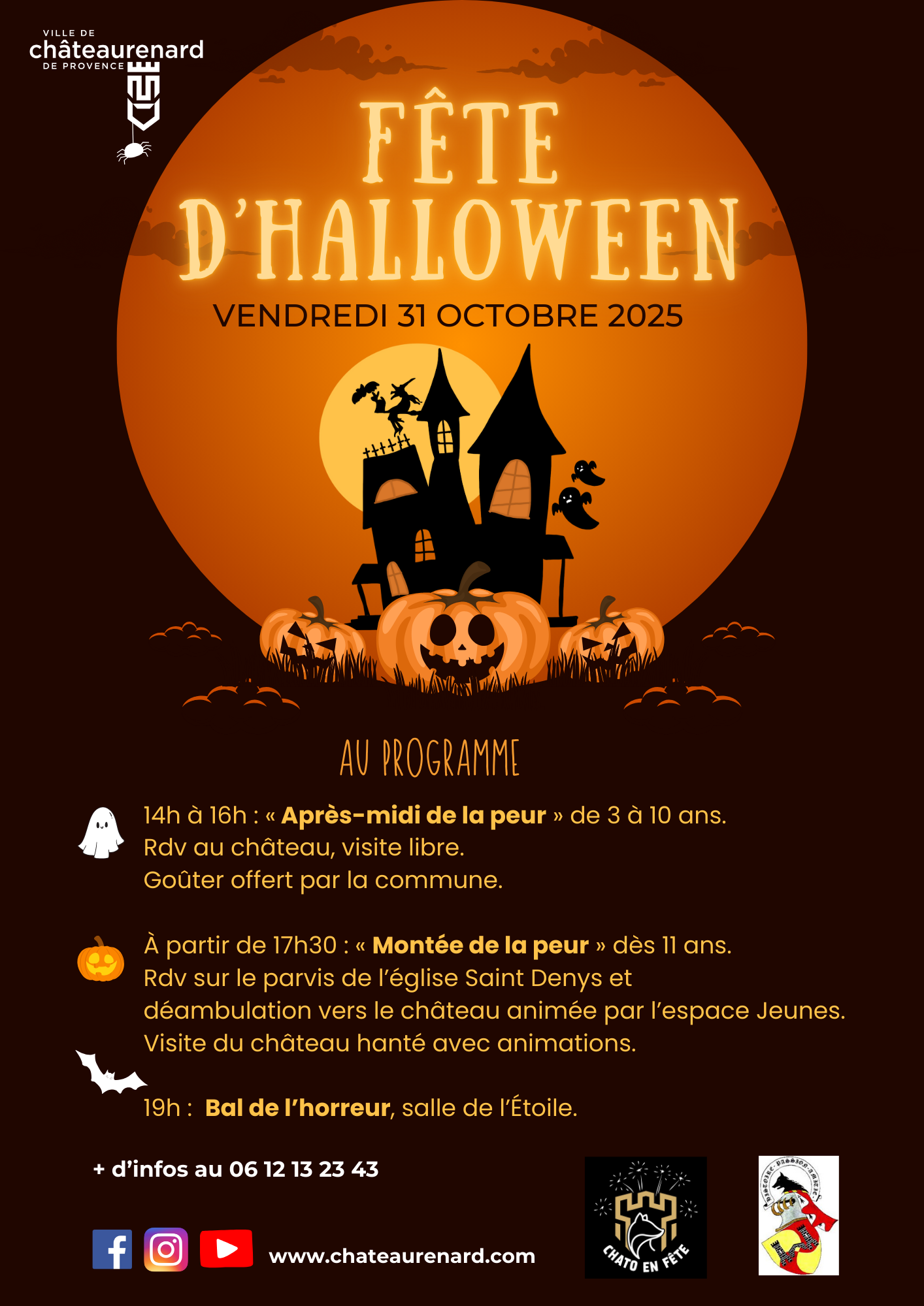 À partir de 17h30 : "Montée de la peur" dès 11 ans. Rdv sur le parvis de l’église Saint Denys et déambulation vers le château animée par l’espace Jeunes. Visite du château hanté avec animations.
