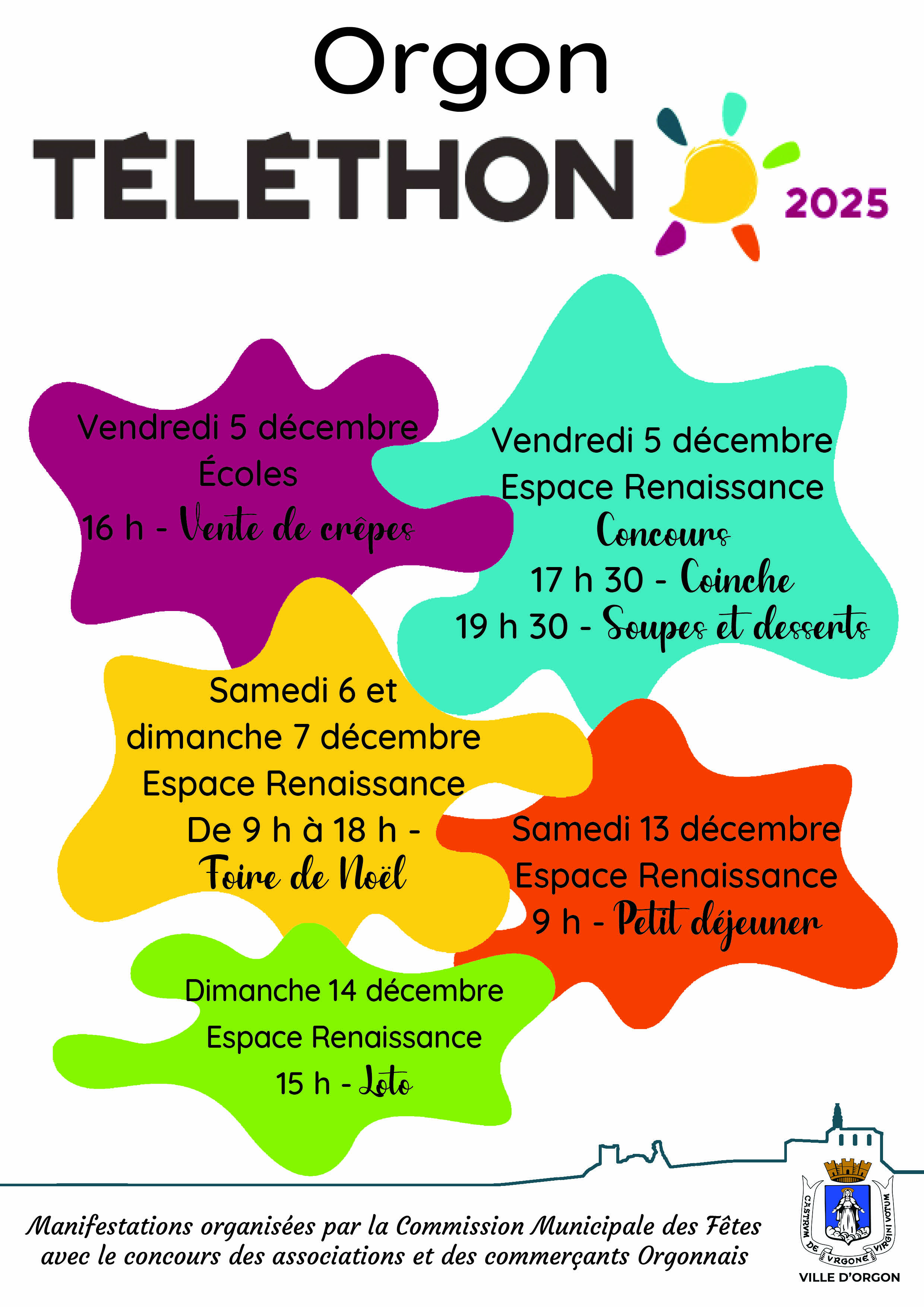 Du vendredi 5, samedi 6, dimanche 7 au dimanche 14 décembre : Téléthon.