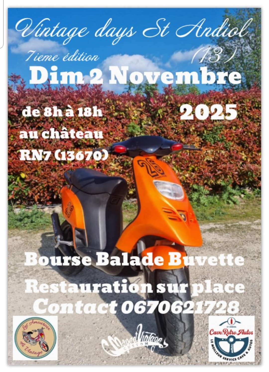 Les Amoureux du Vintage organise le 2 Novembre 2025 de 8h à 18h, au parc du château de St Andiol.