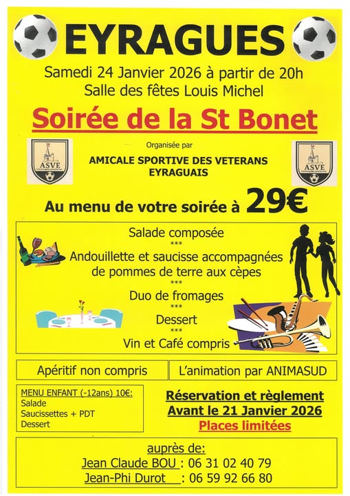 Soirée de la Saint Bonet organisée par l’amicale sportive des vétérans eyraguais, animation par Animasud.