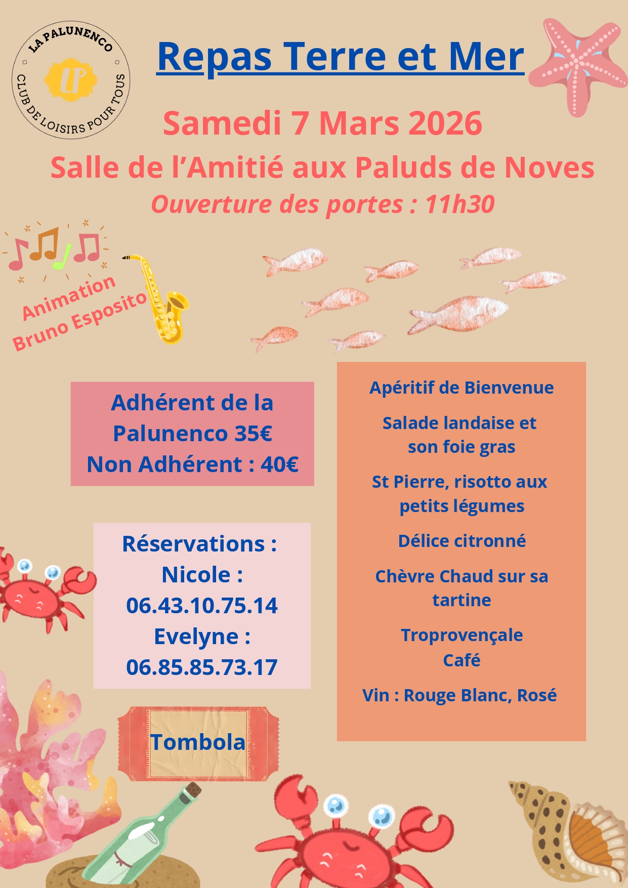 Repas Terre et Mer organisé par L’Association Palunenco , animation musicale par Bruno Esposito.