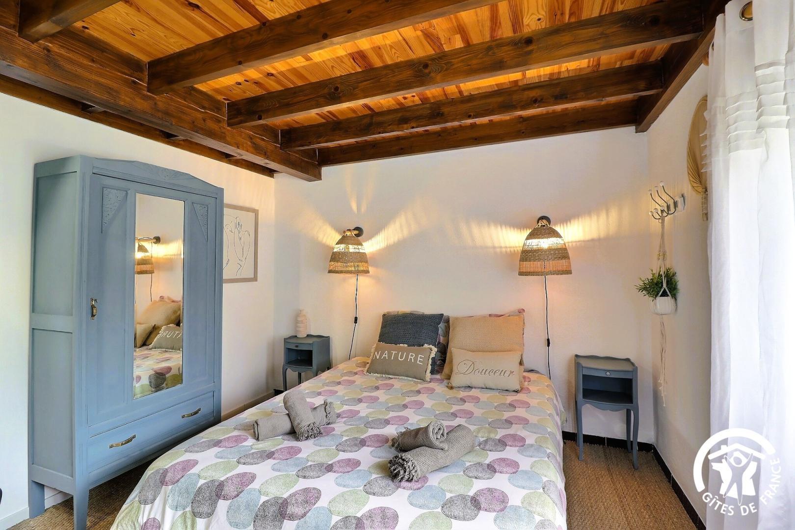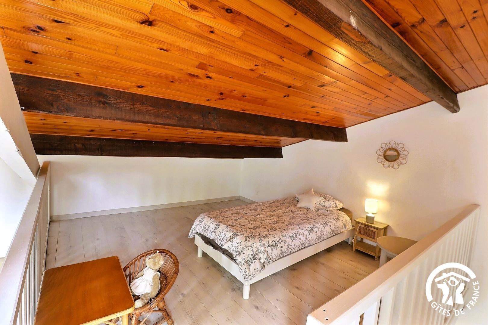 – Une deuxième chambre avec une partie rez-de-chaussée et une partie en mezzanine (climatisation). En bas, chambre avec un lit 2 personnes 160x200cm. 1er étage (mezzanine) : à l’étage de la seconde chambre, mezzanine composée de 2 espaces séparés par une coursive. Le premier espace est un coin jeux pour les enfants, le second espace un coin nuit avec 2 lits 90x190cm. La mezzanine a une superficie totale de 13 m² supérieurs à 1,8m de hauteur. 3 terrasses privatives avec mobilier de jardin, jardin privatif de 800 m², piscine privative 8x4m, profondeur de 1.20 à 2.20m (ouverte de mai à septembre), profondeur maximale 2m, sécurisée par alarme. Table de ping-pong, filet de badminton à disposition. Plancha. Parking dans le jardin fermé. Inclus : draps, linge de toilette, linge de table et ménage de fin de séjour. Lit, chaise bébé, rehausseur et baignoire à la demande.
