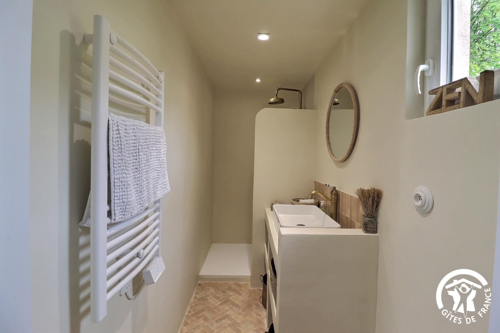 Face à la Montagnette, La Bergerie de Roman est un gîte totalement indépendant avec jardin et piscine privatifs. Au rez-de-chaussée :