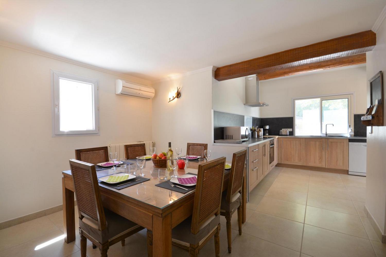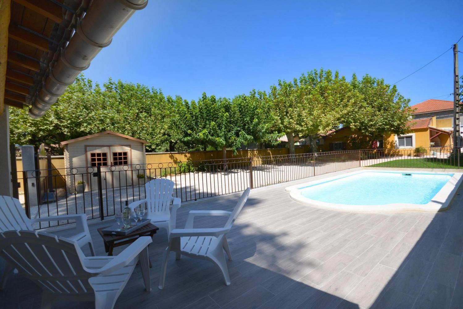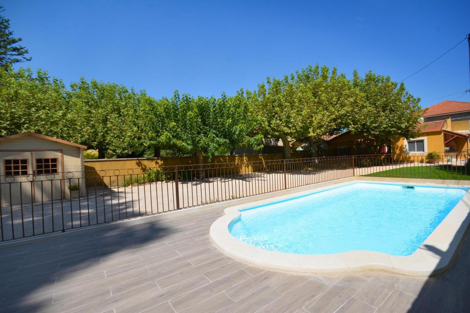 Entre Alpilles et Lubéron, à 23 kms d’Avignon en pleine campagne, gîte indépendant sur terrain entièrement clos (1400 m²), dont le charme réside notamment dans sa belle terrasse ombragée par de vénérables platanes et sa piscine privative clôturée (7,8 m x 3,5 - profondeur 1.40 m - accessible du 01/05 au 15/10). Sur une exploitation agricole de pommiers, ce gite de plain pied pour 6 personnes a été entièrement rénové en 2018. Entrée par la cuisine, totalement intégrée : lave vaisselle, plaques induction, four électrique, four micro ondes, frigo/congélateur, petit électroménager. Bel espace repas avec mobilier de qualité. Le coin salon vous accueillera avec canapé, fauteuils, télévision, bibliothèque. 2 chambres avec un lit 2 personnes (160x200) et une chambre avec 2 lits 1 personne (90x200). Salle d’eau lumineuse avec belle douche italienne. Wc indépendant. Buanderie à l’extérieur avec lave-linge, possibilité de ranger des vélos. Chauffage central (inclus) - lit et chaise bébé - barbecue maçonné sur la terrasse - wi-fi - salon de jardin - draps et linge de maison sur demande (10€ par personne le kit complet) - animaux admis après accord du propriétaire - terrain de pétanque éclairé (boules à disposition) - parking privatif sur le terrain fermé. Vous séjournerez dans un bel environnement verdoyant et arboré, à proximité de tous les grands sites naturels et culturels de la région : les Alpilles (St Rémy de Provence), le Lubéron, Avignon.. Sans oublier les multiples petites routes de campagne à découvrir à vélo ou à moto.