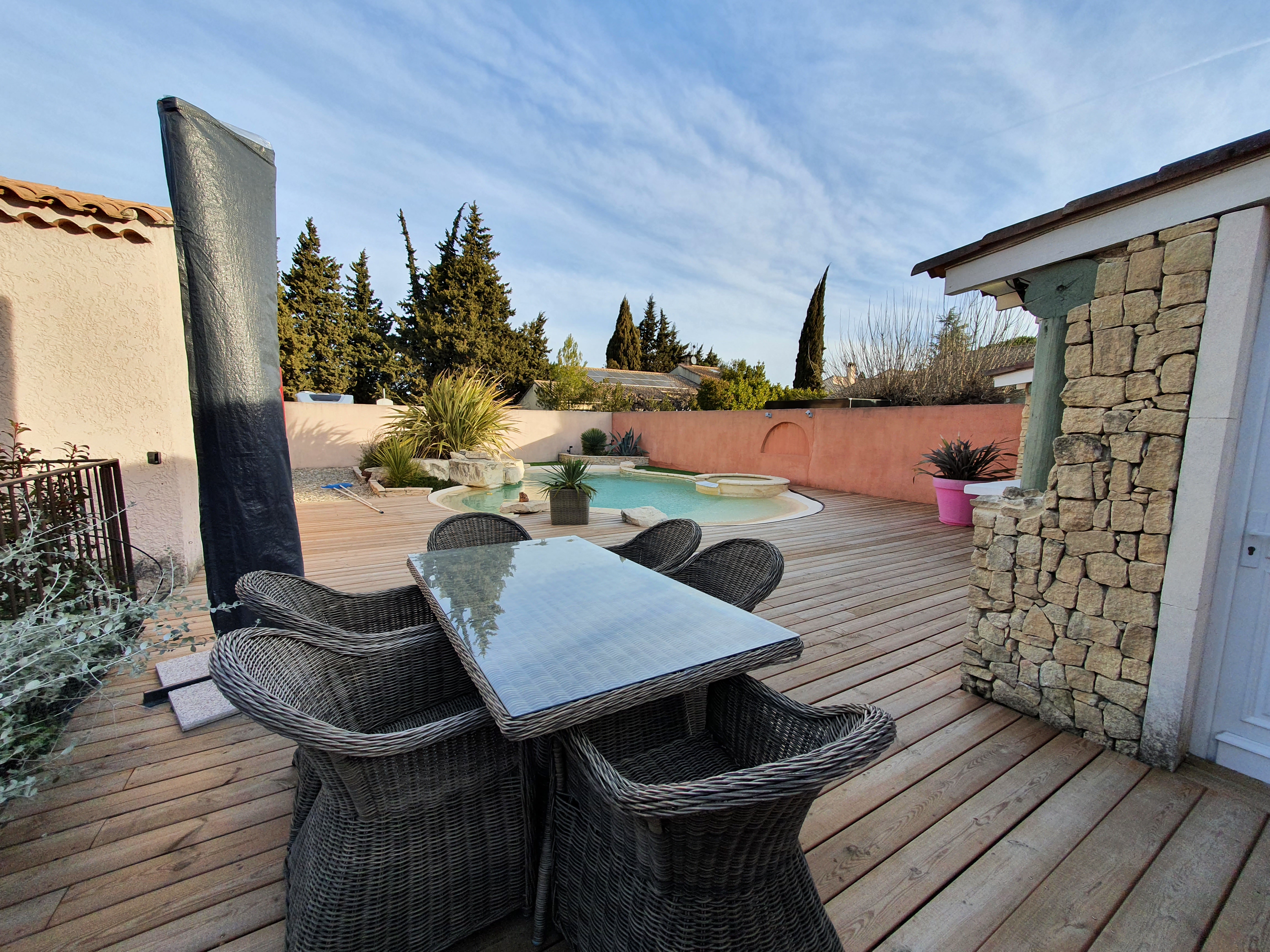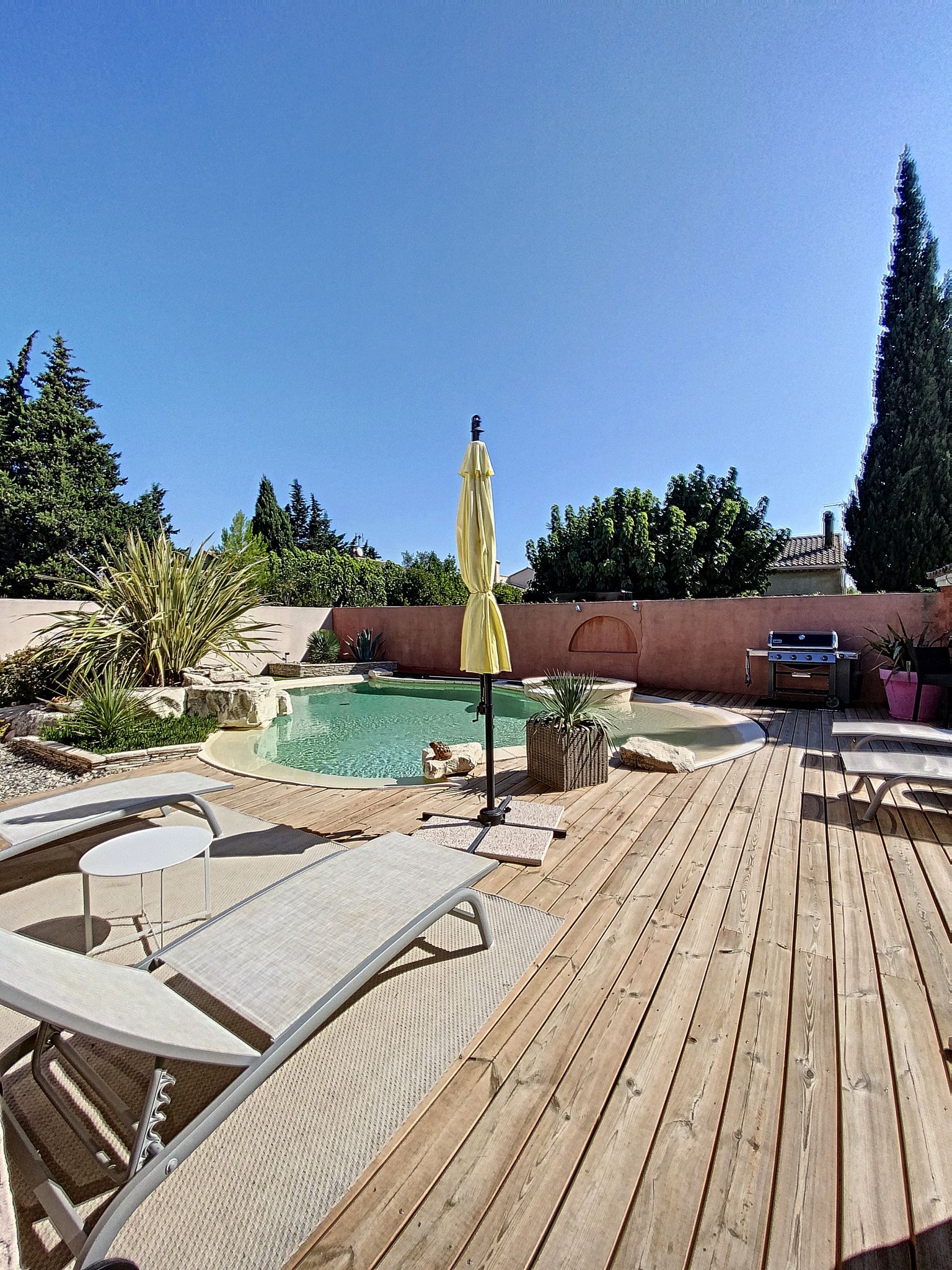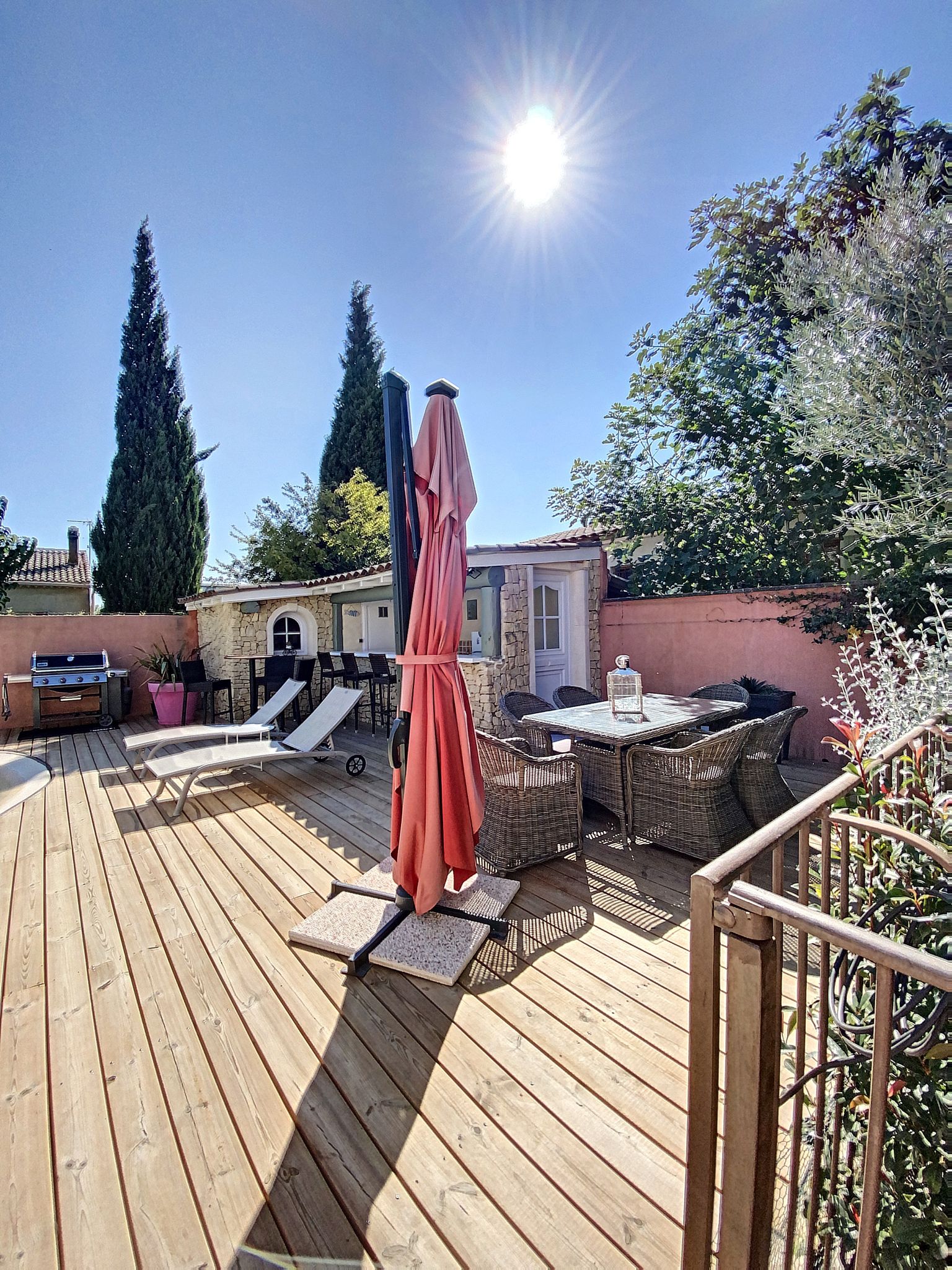 Après une balade, de retour à la villa vous pourrez profiter d’un apéritif et d’un barbecue sur une des trois terrasses autour la maison ou autour de la piscine (sécurisée pour les enfants) .