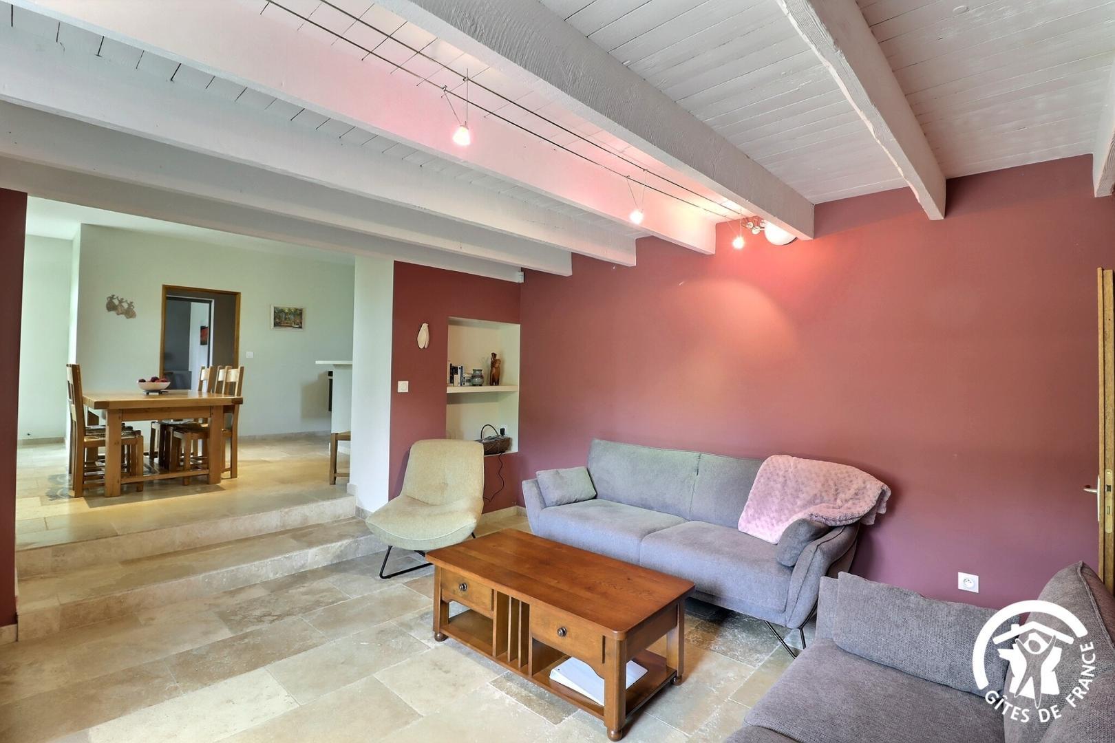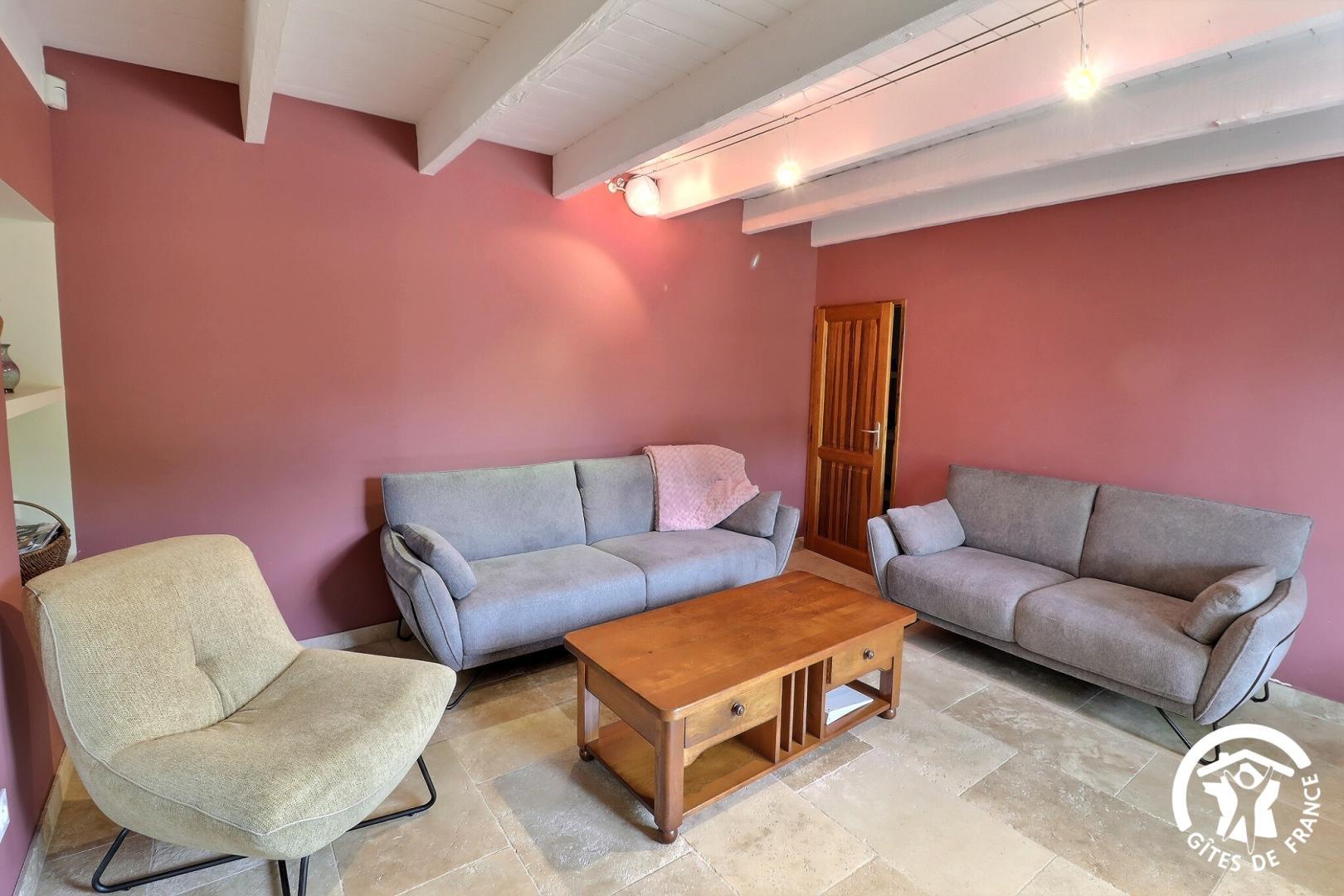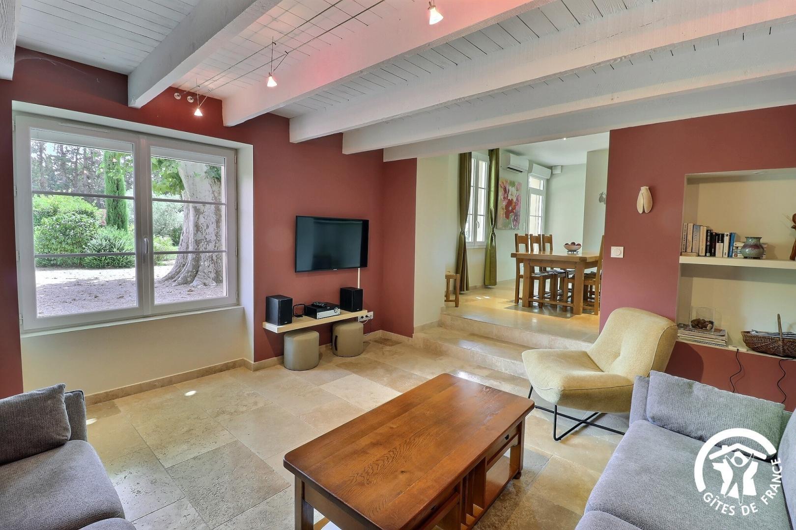 En rez-de chaussée : - salon détente avec canapés, TV et chaine hi-fi.