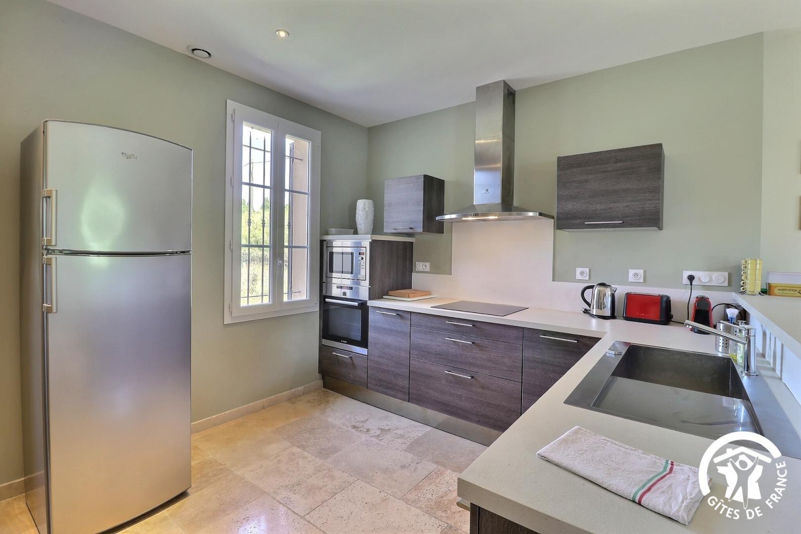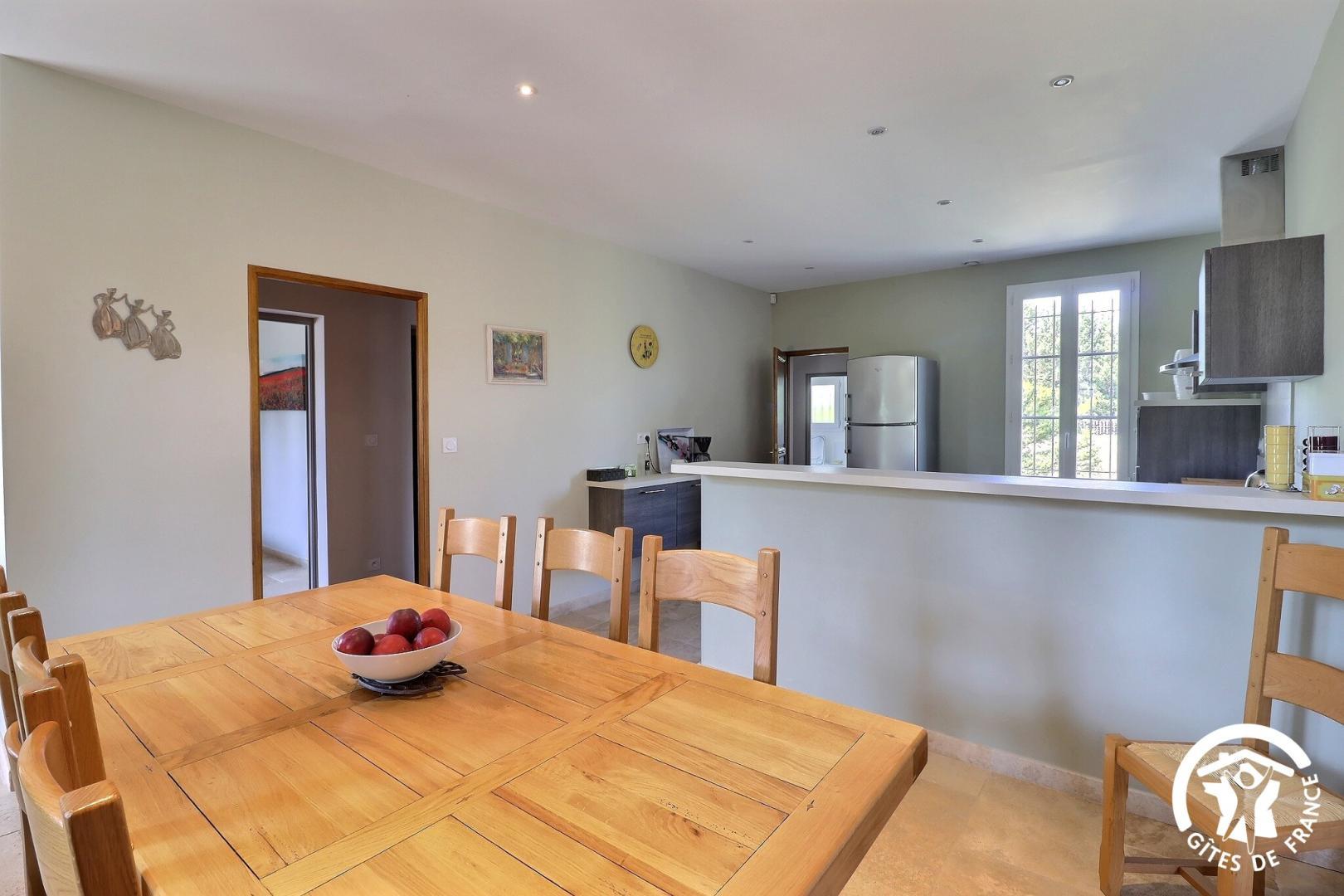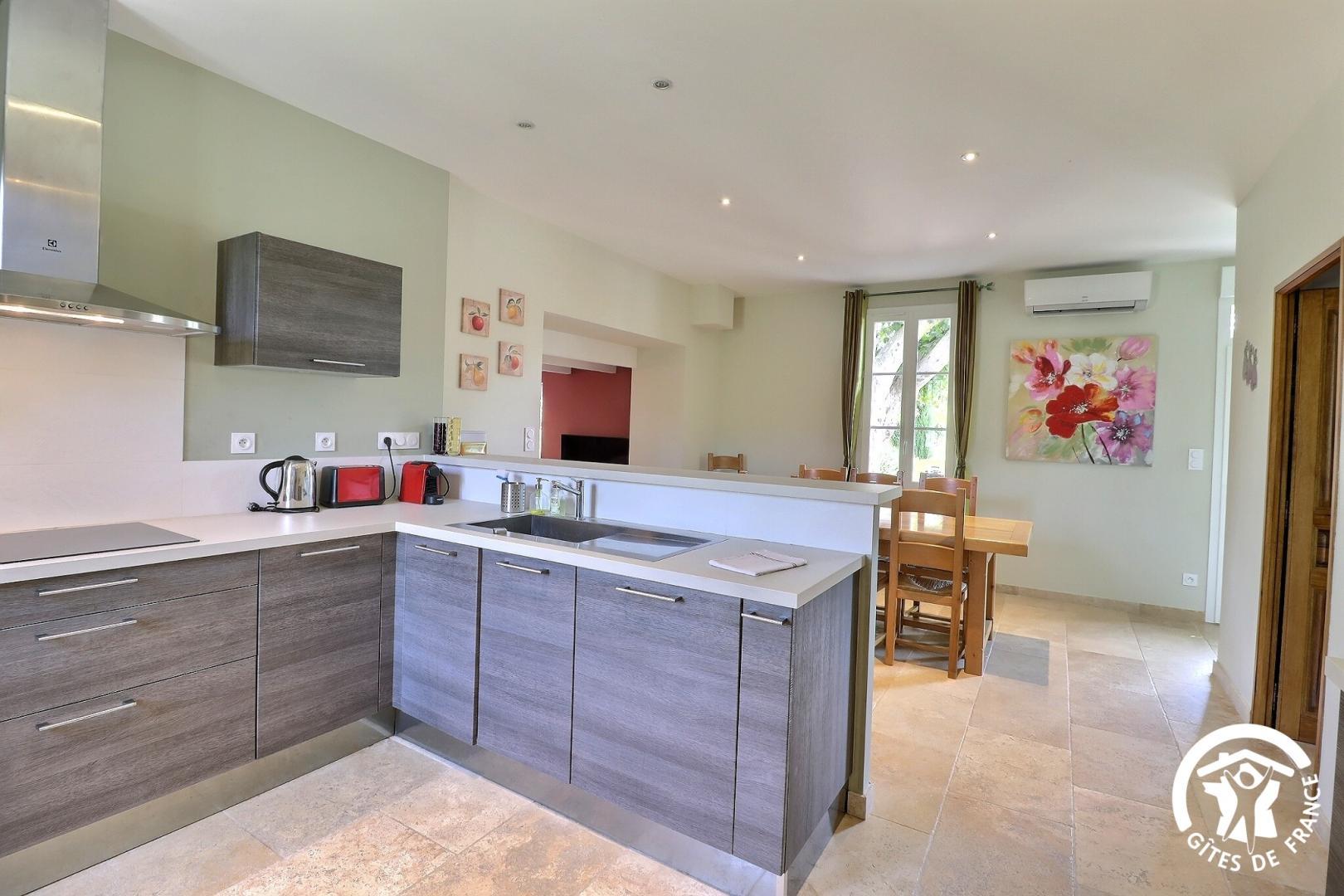 – Vaste salle à manger avec cuisine américaine (lave-vaisselle four micro-ondes plaque induction cafetière Nespresso).