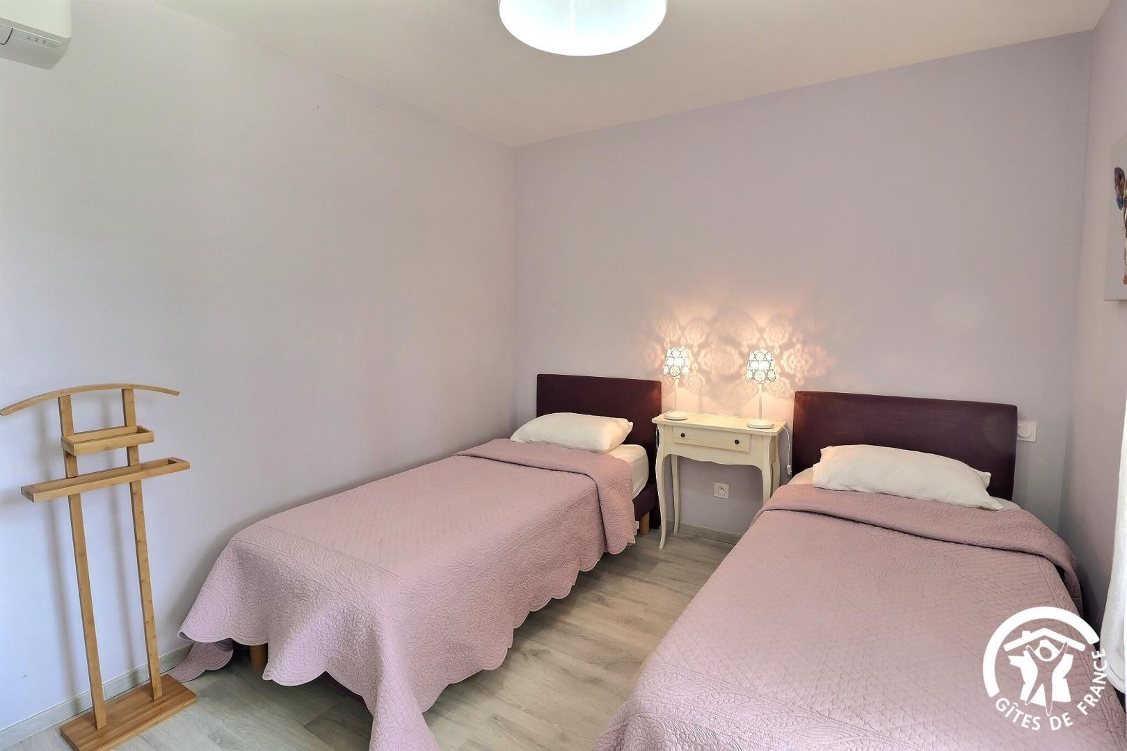 – une chambre avec lit en 160x200 et une deuxième avec 2 lits en 90 x 200.