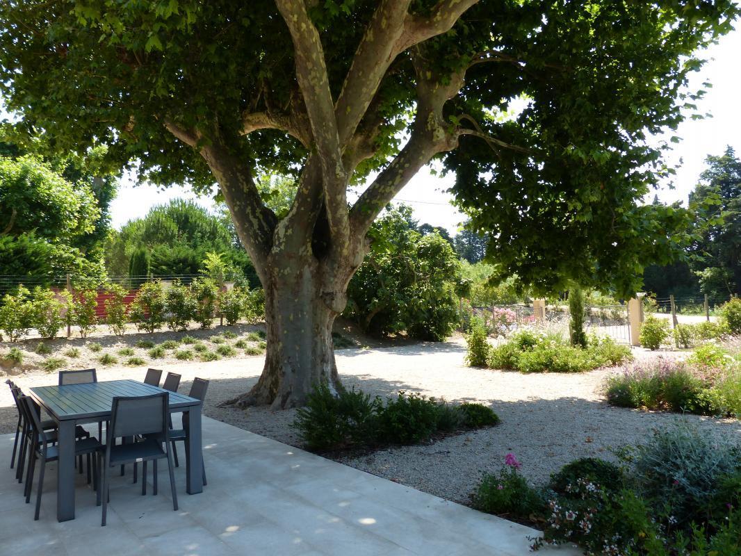 Devant la maison un platane centenaire ombrage la terrasse de 30 m2 et apporte fraicheur et quiétude au lieu. Ancien mazet entièrement rénové avec des matériaux et équipements de qualité.