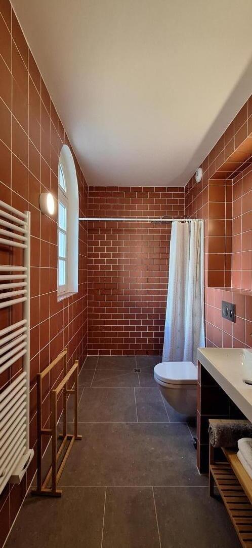 – une salle d’eau avec douche à l’italienne, meuble double vasque, WC et sèche-serviettes chauffant