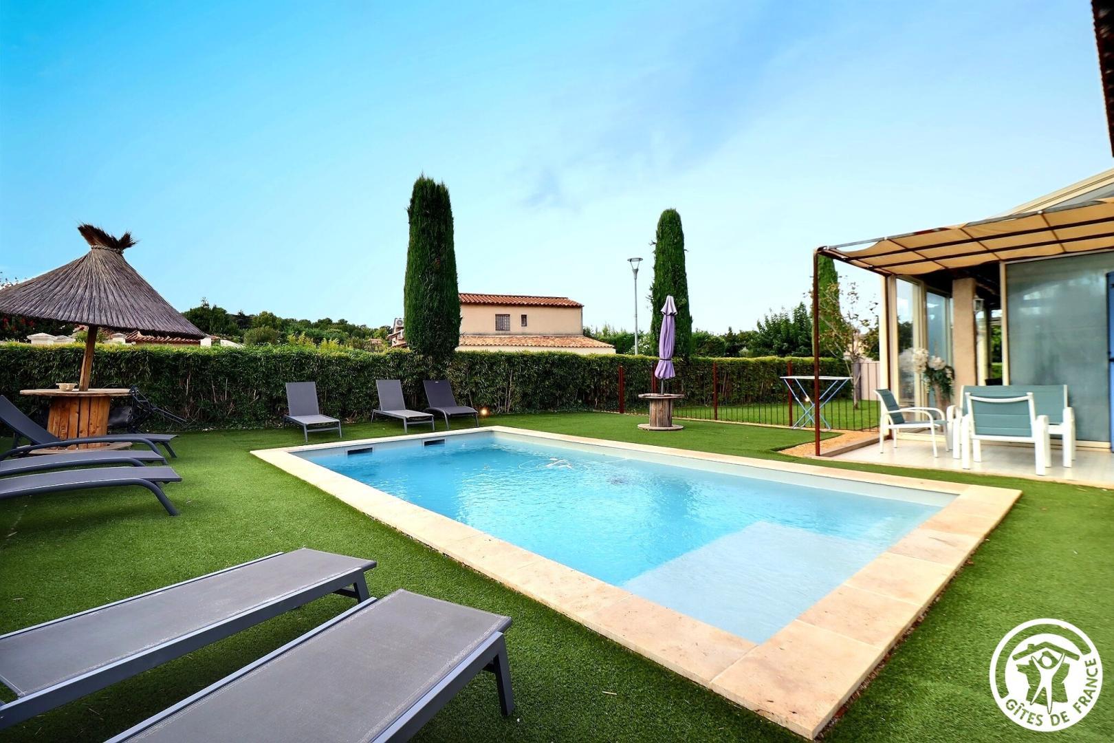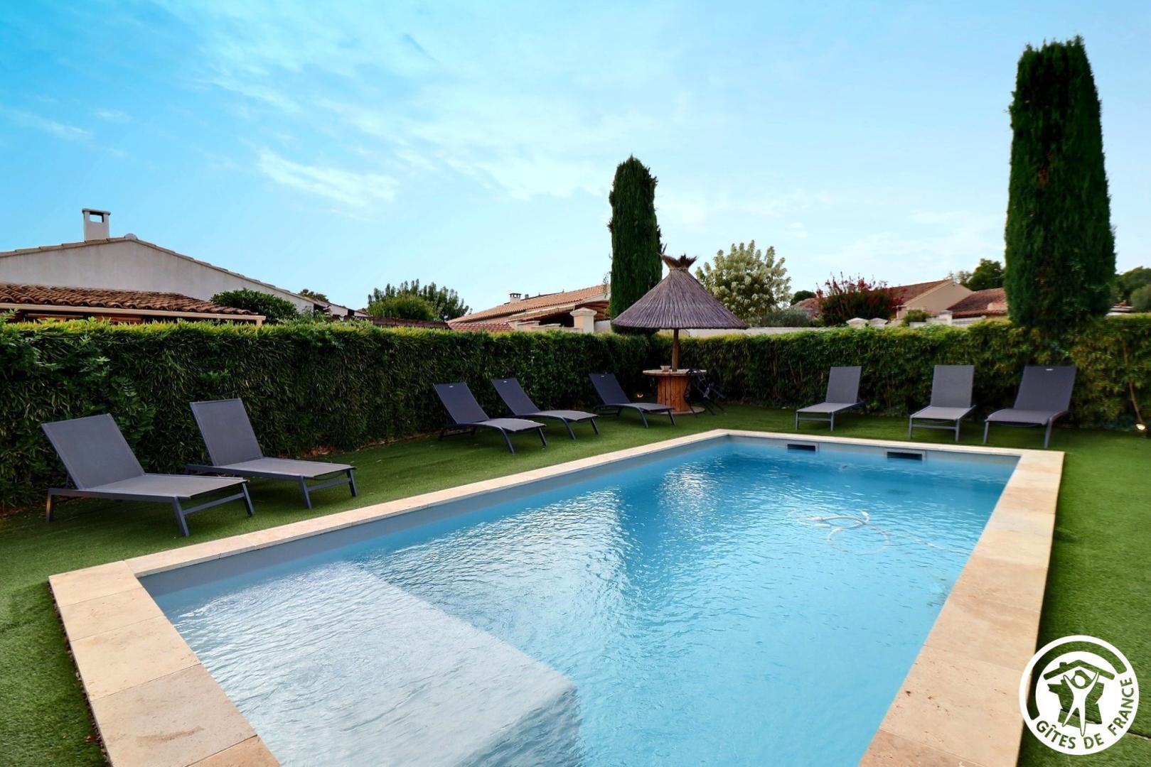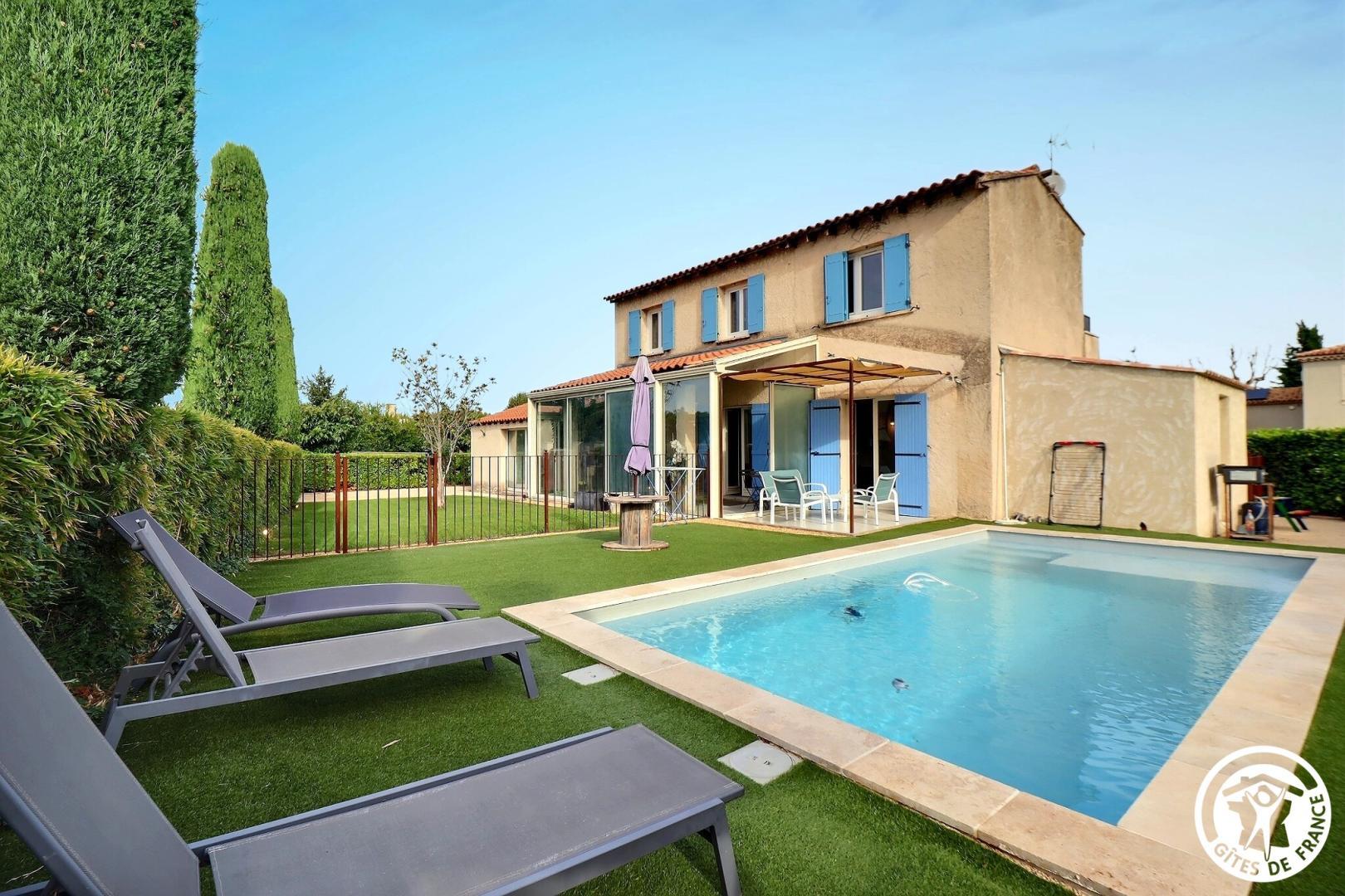 Situé dans les Alpilles, dans un quartier résidentiel, le gîte "Chez Ginou" est une grande maison indépendante avec jardin et piscine privatifs.