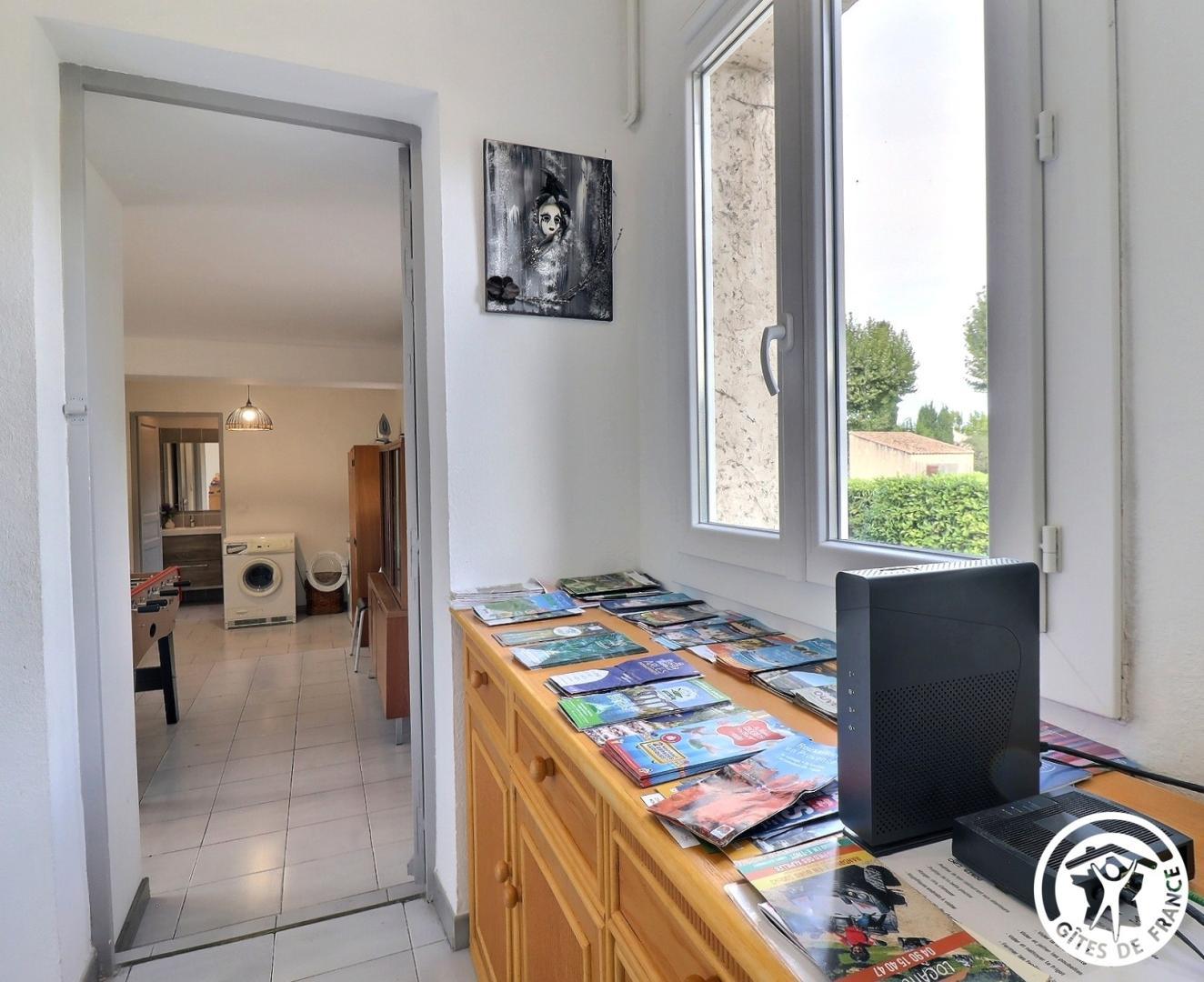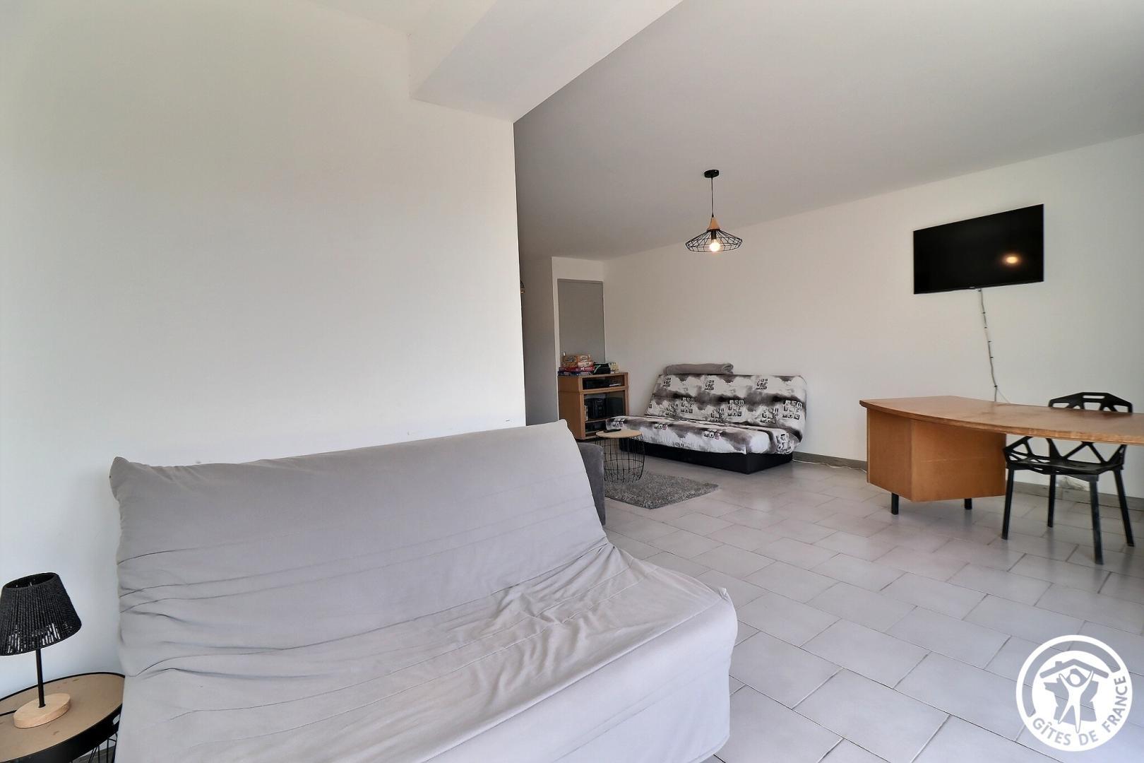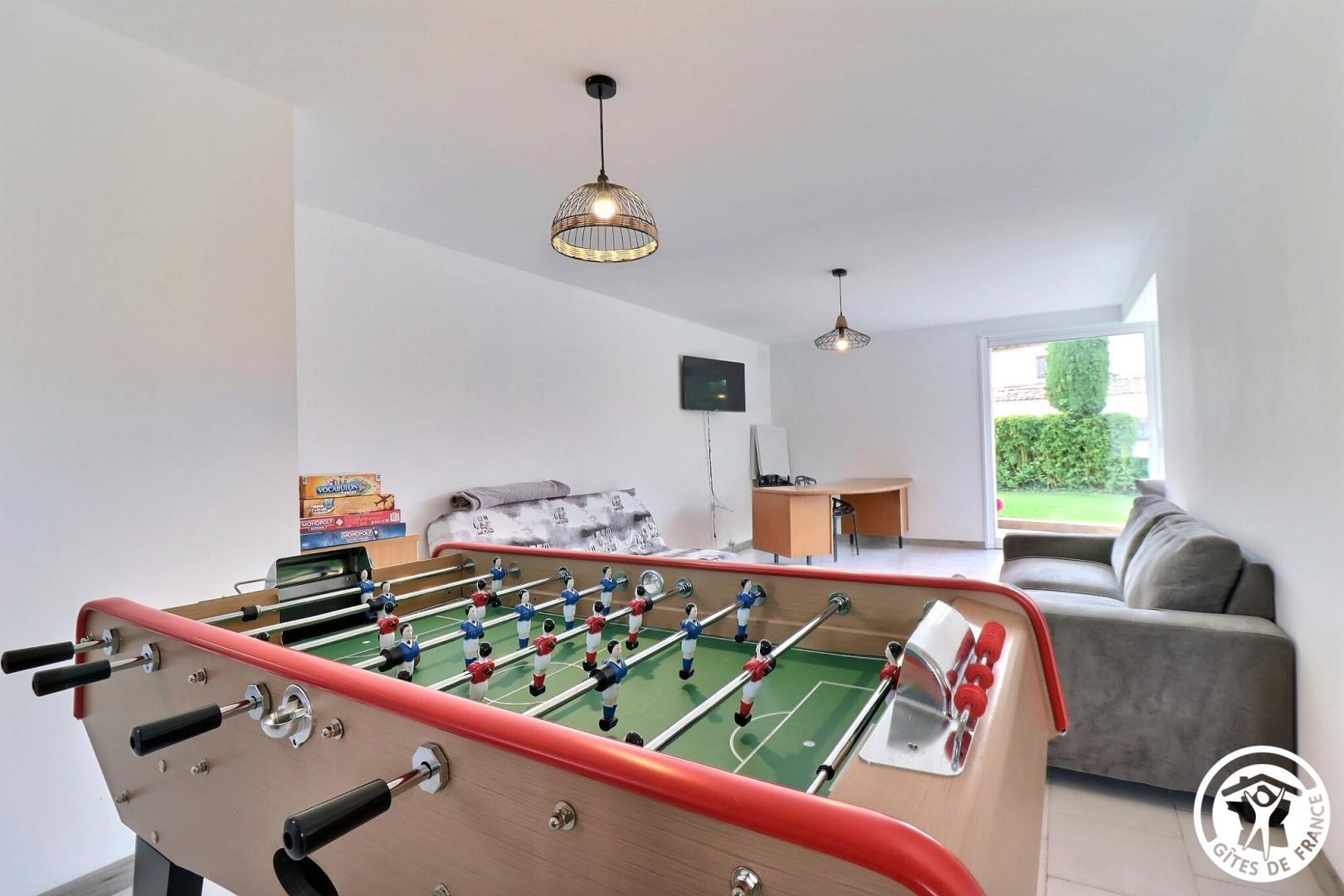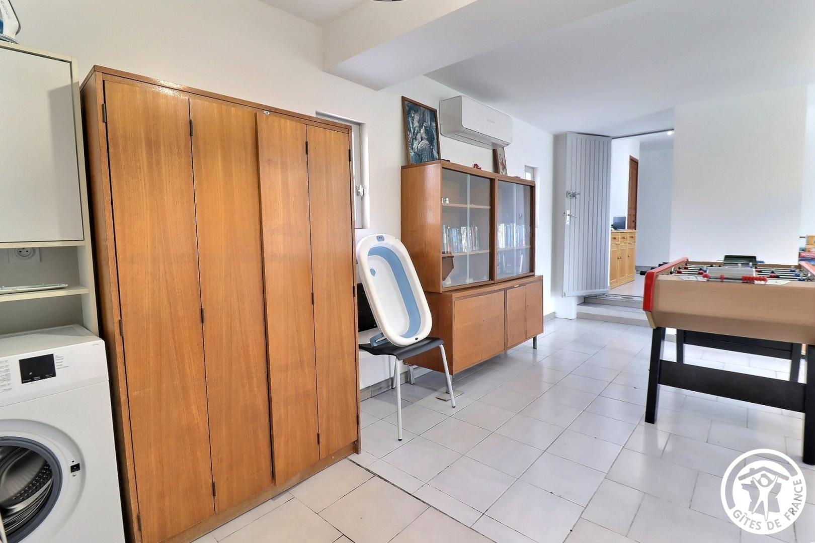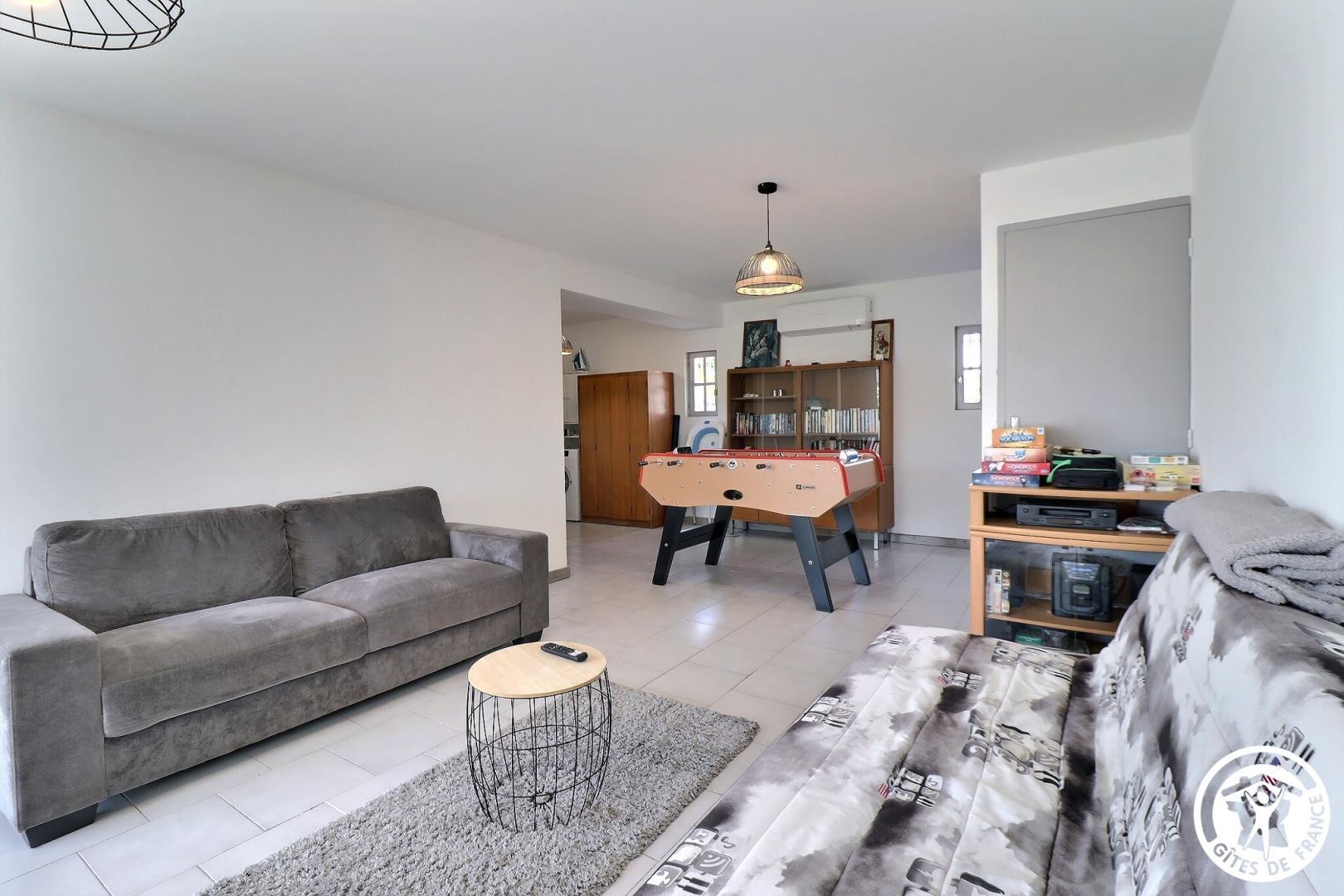 – Un second séjour avec grand bureau, salon avec canapé et TV écran plat, baby-foot, lave-linge et sèche-linge. 2 canapés convertibles dans cet espace.