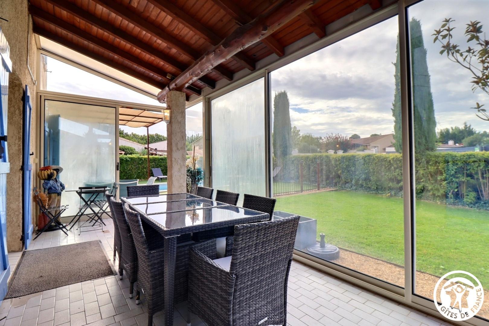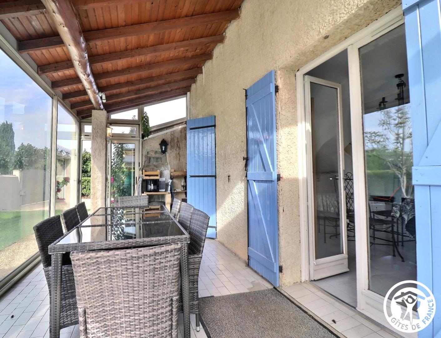 – Une grande véranda de 27 m² avec salon de jardin et table de ping-pong.