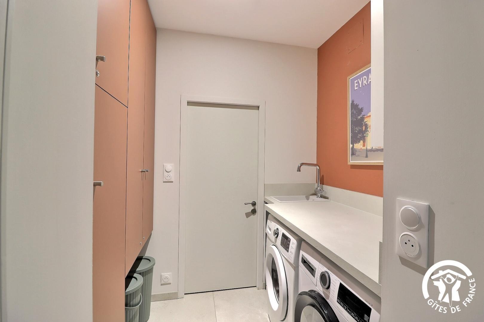 – une buanderie avec machine à laver et sèche-linge