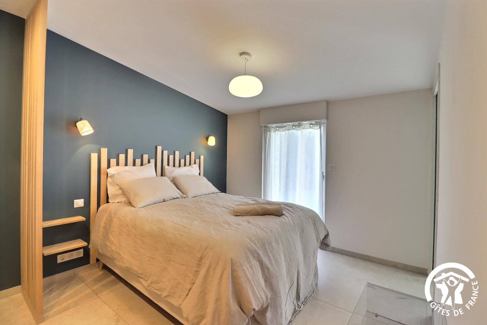 – une chambre avec un lit 160x200 (séparable en 2 lits 80x200)