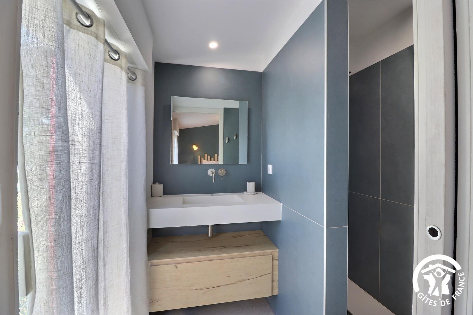– une suite parentale avec lit 160x200, bureau et salle d’eau attenante avec douche à l’italienne et meuble vasque