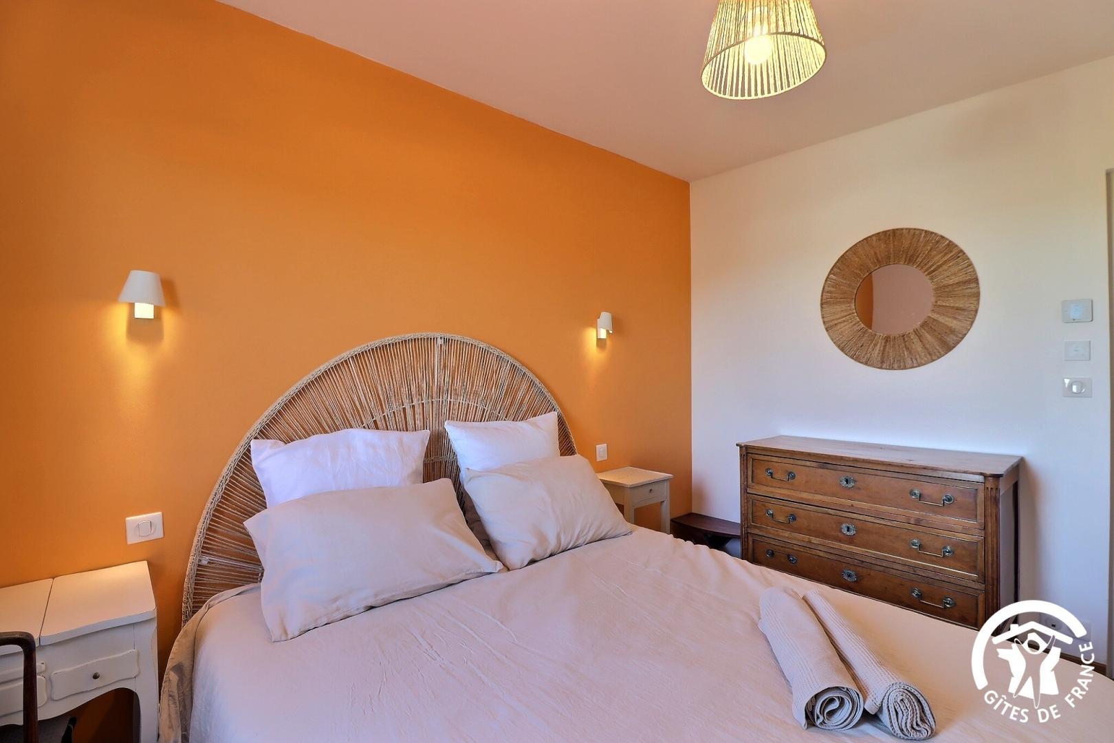 – une chambre avec lit 160x200, commode et placard