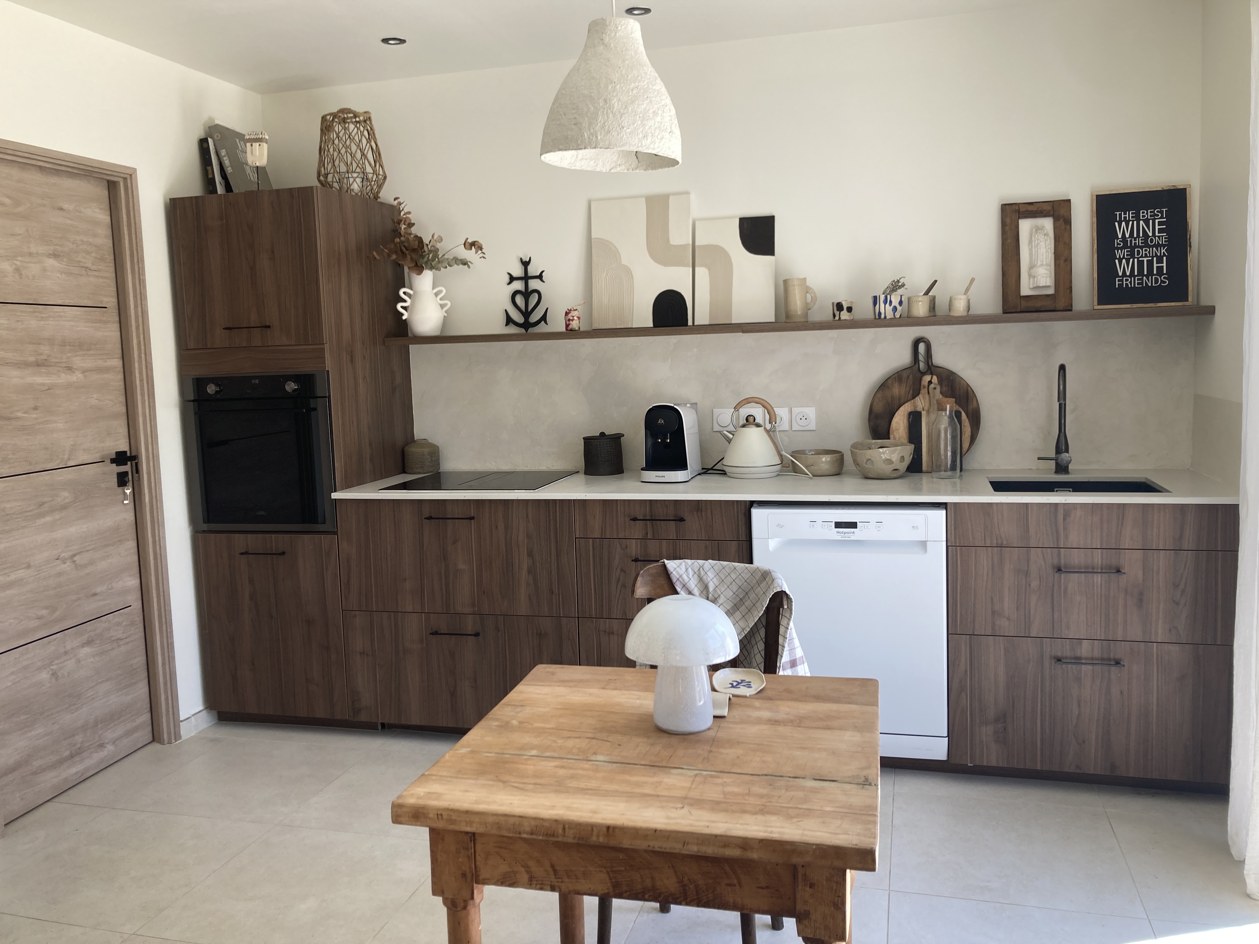 La maison dispose de trois chambres, dont une suite parentale au rez-de-chaussée, d’un vaste séjour lumineux ouvert sur une cuisine entièrement équipée, et d’un jardin clos agrémenté d’un bel olivier, parfait pour profiter du soleil et des douces soirées d’été.