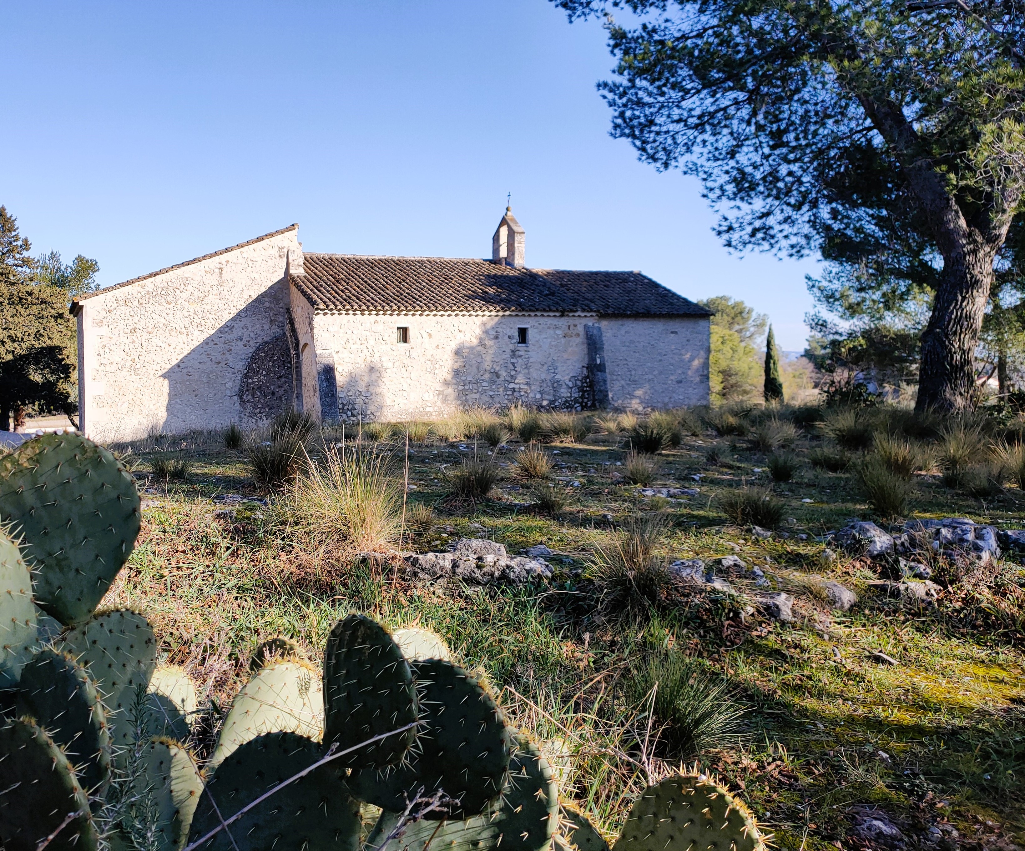 Installée sur le lieu même où fut établi le premier habitant novais, elle fut d’abord un simple ermitage de moines observantins. La nef de la chapelle, contigüe à l’ermitage fut construite en 1630, et agrandie en 1722 en exécution d’un vœu fait par les habitants de Noves lors de la grande peste de 1720-1721. Un pèlerinage en lien avec ce vœu se déroule toujours aujourd’hui (1er samedi de septembre). En 1832, l’abside fut construite puis au XIXème, ce fut le tour du narthex. L’intérieur de cette chapelle se visite uniquement pour les journées du Patrimoine.