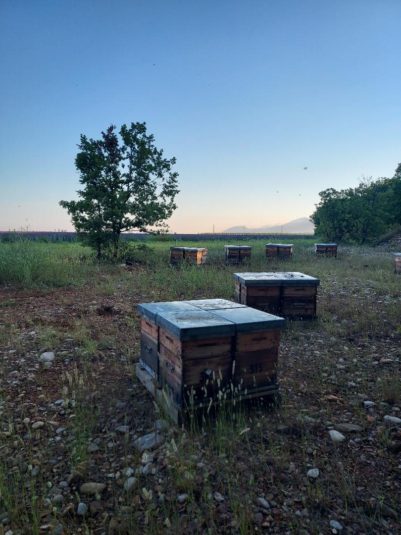 A la vente, vous trouverez les miels produits par nos abeilles à savoir les miels de lavande, tilleul, châtaignier, acacia, toutes fleurs mais également du jus de pomme et de la compote issus de notre verger de pommier.