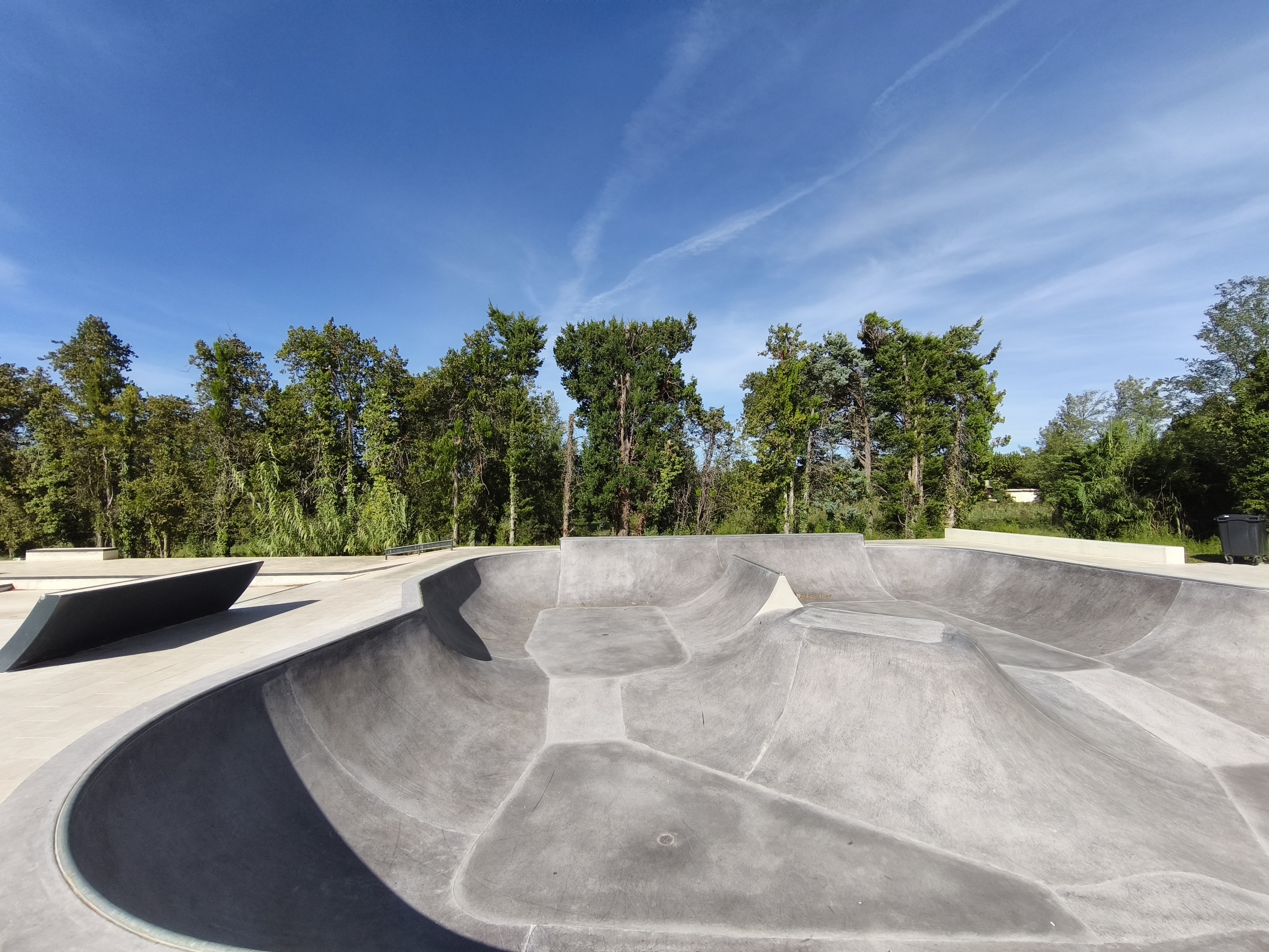 Le skatepark de la ville ouvert en 2024, s’étend sur plus de 1 500 m² de béton et propose deux espaces de ride accessibles à tous les niveaux : une zone streetpark équipée de rails, murets et tables de saut, ainsi qu’un bowl en béton offrant des courbes fluides.
