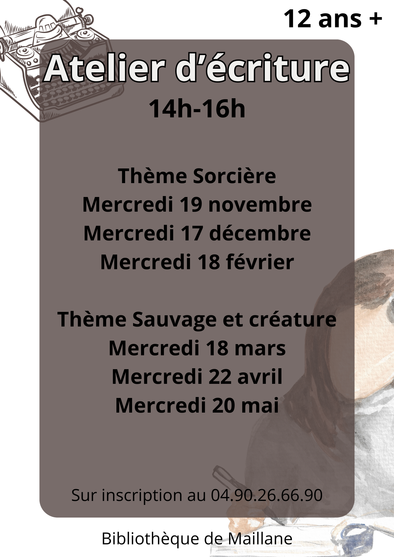 La bibliothèque de Maillane vous invite à participer à son atelier d’écriture, une occasion unique de laisser libre cours à votre créativité.